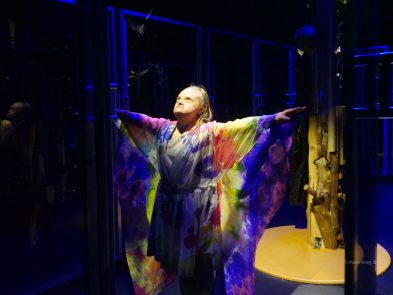 Die Umsetzung der Boxen selbst war ein Prozess. Ich habe mich erstmal im Internet umgesehen und habe unter anderem geschaut, was man mit ganz normalen Duschboxen machen kann, zum Beispiel diese auf Rollen setzen. Das erschien mir aber zu wackelig. Dann hat sich ein Kontakt zu einer lokalen Firma hier in Ortenberg ergeben. „Schäfer vollendet“ heißt diese. Ein Glücksfall, dass diese so nah ist. Dort wird sehr professionell mit Plexiglas gearbeitet. Wir haben unseren Bühnenbauer dazu geholt, der eher ein Kreativ-Handwerker ist. Gemeinsam wurde dann die Plexiglasbox entwickelt. Unten eine Holzplatte, vier Rollen ein kleiner Aluminiumrahmen, damit der Blickwinkel nicht verzerrt wird. Und fertig war die Idee.