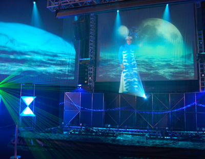 Die Lichtshow am Stand von LOBO spielt mit den Elementen: Nicht nur, dass Feuer, Erde, Wasser und Wind, repräsentiert durch reale Darsteller, lediglich auf Leinwände projiziert werden. Der neue Laser Moving Head namens Zaphir lässt nämlich seine Visualisierungen von einer Wasserwand reflektieren. Zusammen mit moderner Hazertechnik, LED-Wahnsinn und einigen Krachern in Sachen Pyrotechnik wird so…